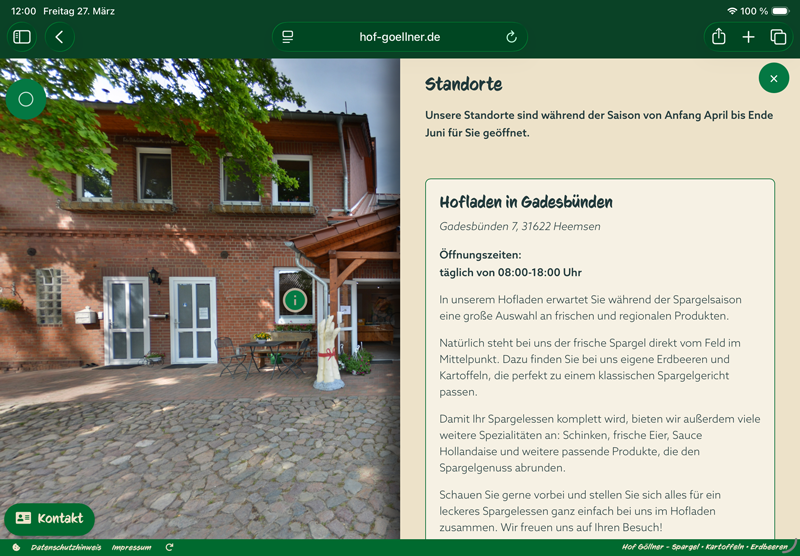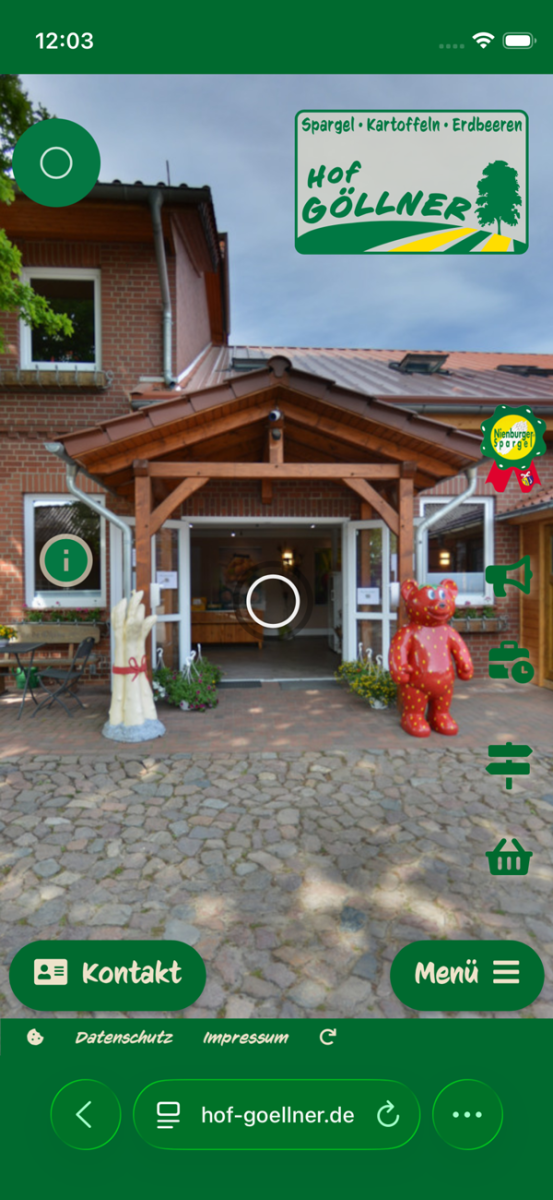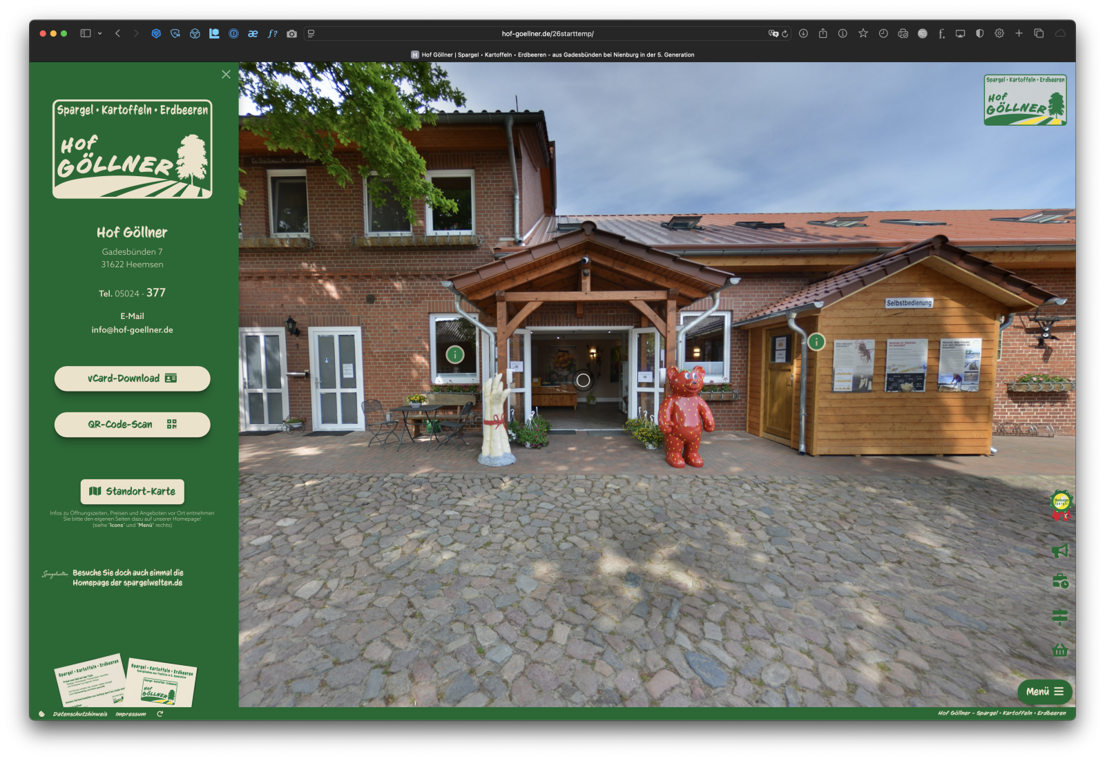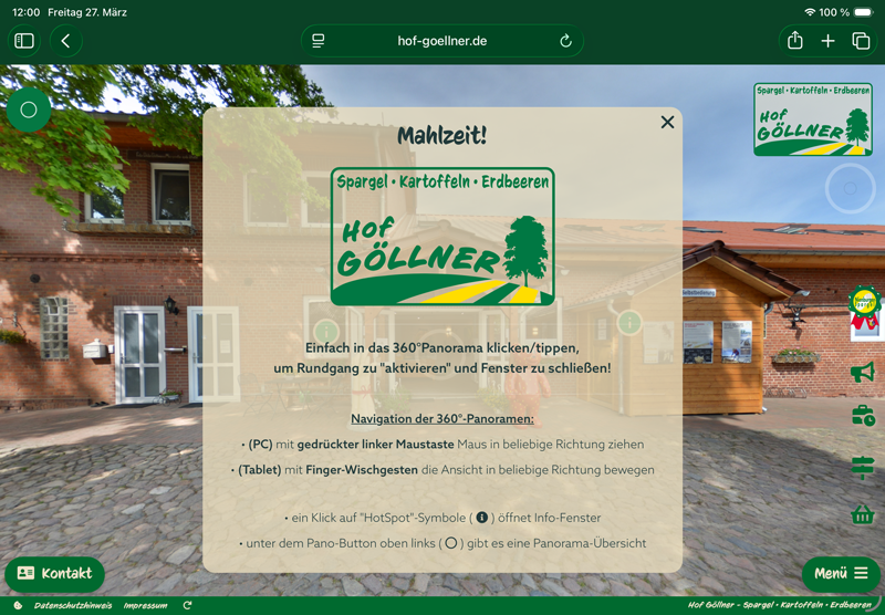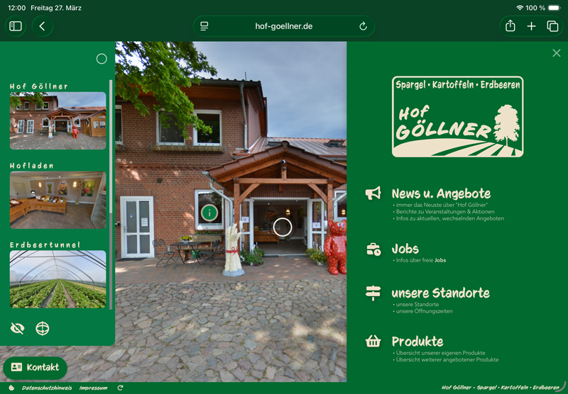 Sie können sich so (fast wie) "live" auf unserem Hof und sogar direkt in unseren Feldern umschauen bzw. durch die einzelnen Bereiche wandern, sich ganz nebenbei aber auch informieren und neuste Informationen und aktuelle Themen anzeigen lassen.