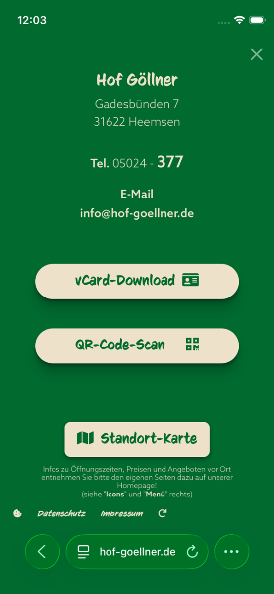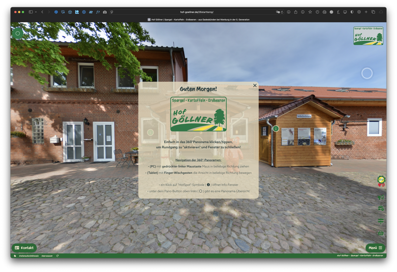 Und die Homepage des Hof Göllner ist nicht nur eine klassische Website, sondern besteht aus einem komplett "interaktiven Rundgang" über unseren Hof in Gadesbünden mit darin integrierten üblichen "Homepage-Elementen"!